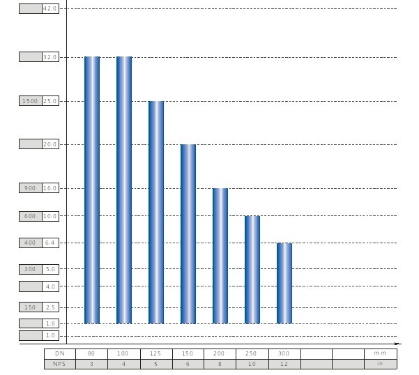 The test range of valve nominal diameter and nominal pressure for JWZ-300 model