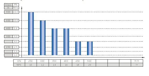 The test range of valve nominal diameter and nominal pressure for JWZ-500 model