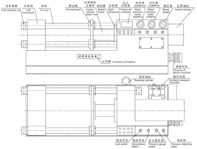 四、接通電源,按油泵起動(dòng),檢查電機(jī)轉(zhuǎn)動(dòng)方向是否正確(順時(shí)針方向),調(diào)節(jié)油泵壓力在5 0MPa進(jìn)行試機(jī),檢查各管路有無泄漏,發(fā)現(xiàn)不良現(xiàn)象應(yīng)立即進(jìn)行檢修。