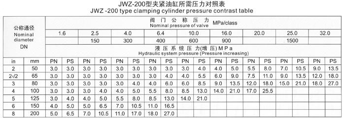 The test range of valve nominal diameter and nominal pressure for JWZ-200 model