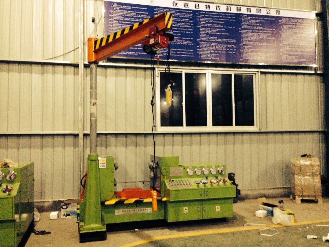 三、接通電源,按油泵啟動(dòng)按鈕,檢查電機(jī)轉(zhuǎn)動(dòng)方向,是否正確(順時(shí)針?lè)较?進(jìn)行5—1 O分鐘空載運(yùn)轉(zhuǎn)后,調(diào)節(jié)油泵壓力在5 0MPa進(jìn)行試機(jī),各種動(dòng)作,檢查各管路有無(wú)泄漏,發(fā)現(xiàn)不良現(xiàn)象,應(yīng)立即停機(jī)排除。
