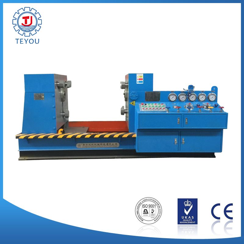 本機(jī)集機(jī)電、液壓、試壓、液體介質(zhì)貯存循環(huán)使用于一體,具有功能完善、性能穩(wěn)定、自動(dòng)化程度高等特點(diǎn)。廣泛用于公稱通徑DNl 5-1000mm的直通式法蘭及螺紋連接各類高、中、低壓閥門的強(qiáng)度、密封和泄漏量等各項(xiàng)性能測(cè)試。測(cè)試介質(zhì):水、氣、油。最高密封試驗(yàn)壓力 32.0MPa,強(qiáng)度48 0MPa。